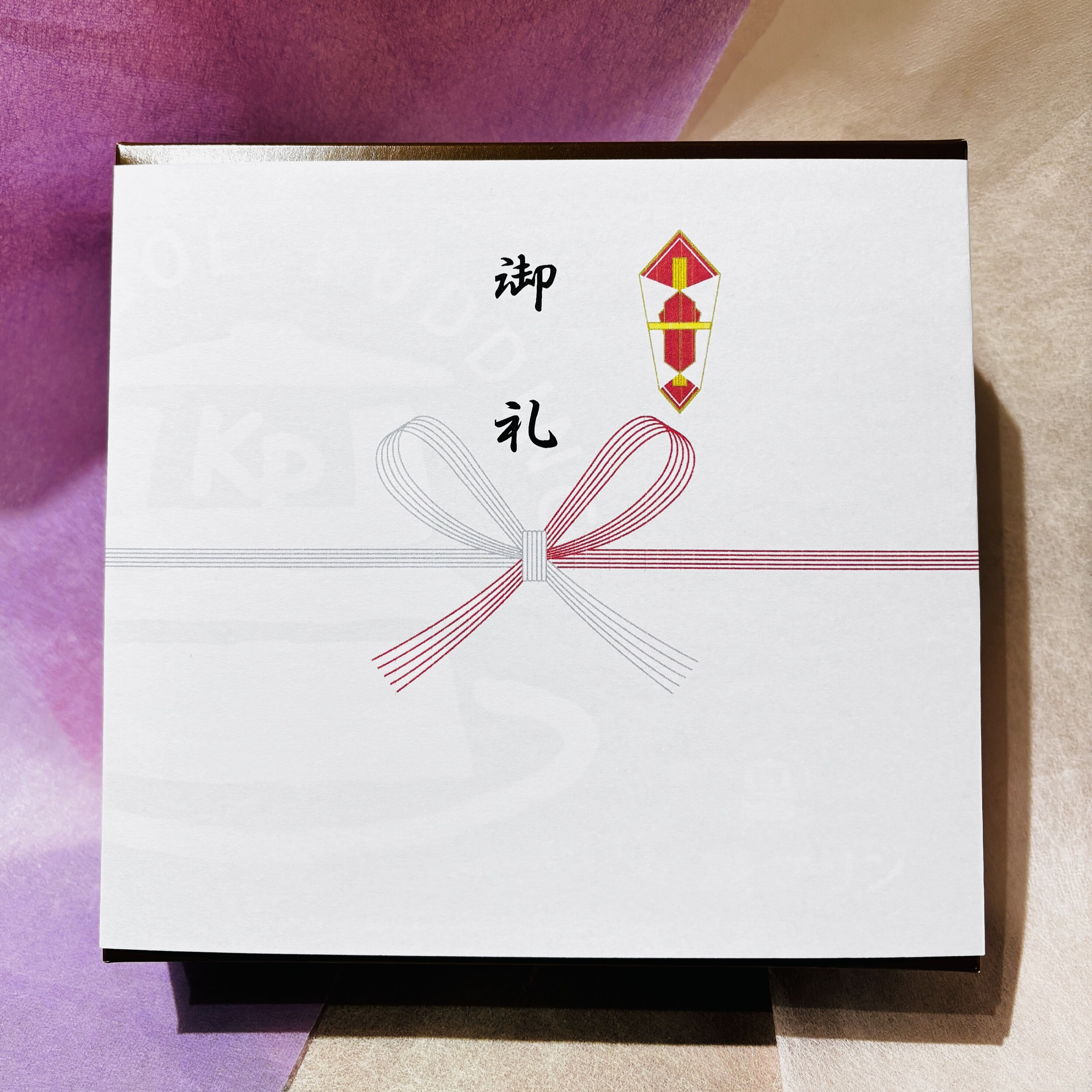 贈答用箱 熨斗 (箱は6個入り用ですので、3個ですと上下どちらかになります)