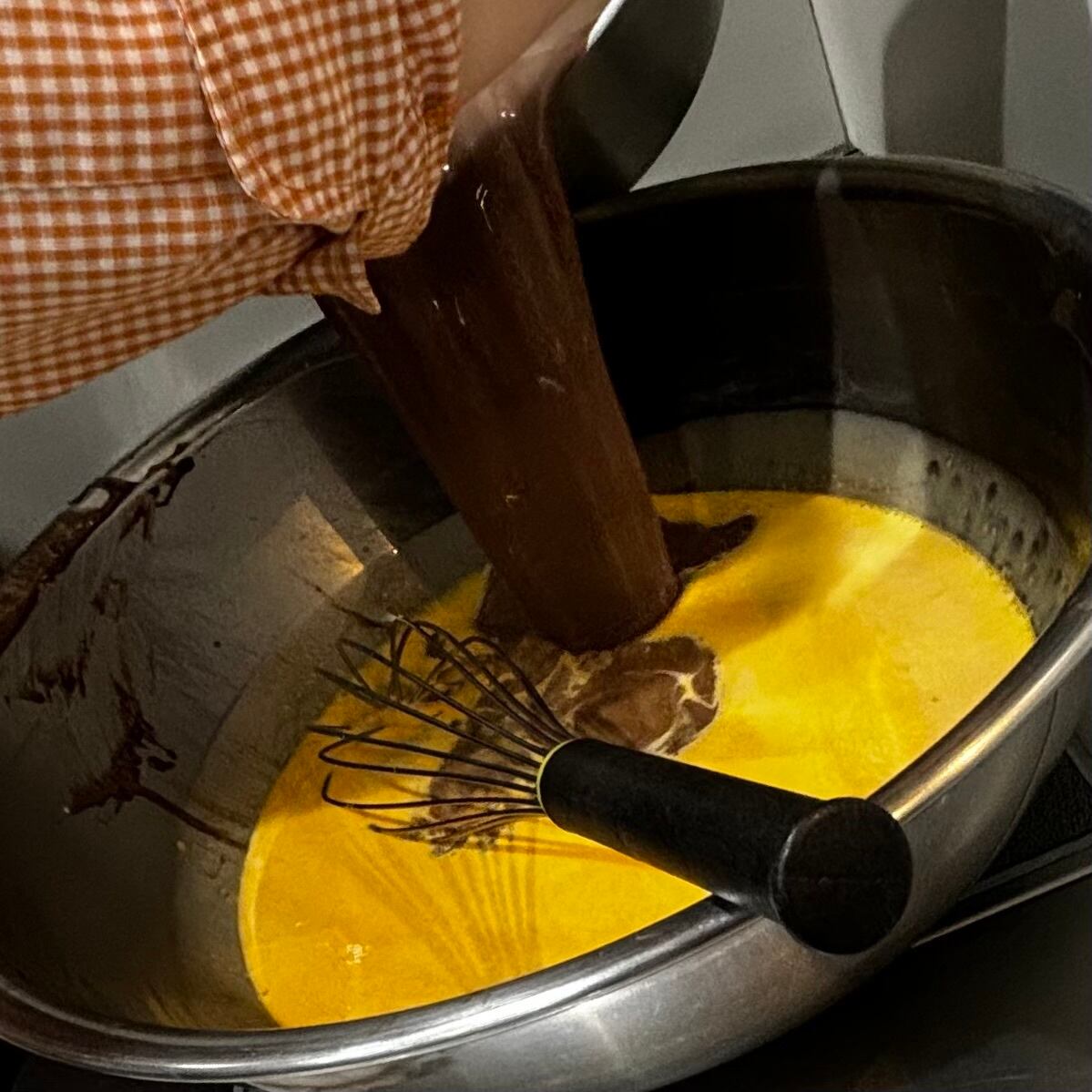 ●2種類のチョコをふんだんに使用。濃厚なチョコプリンに仕上げました。